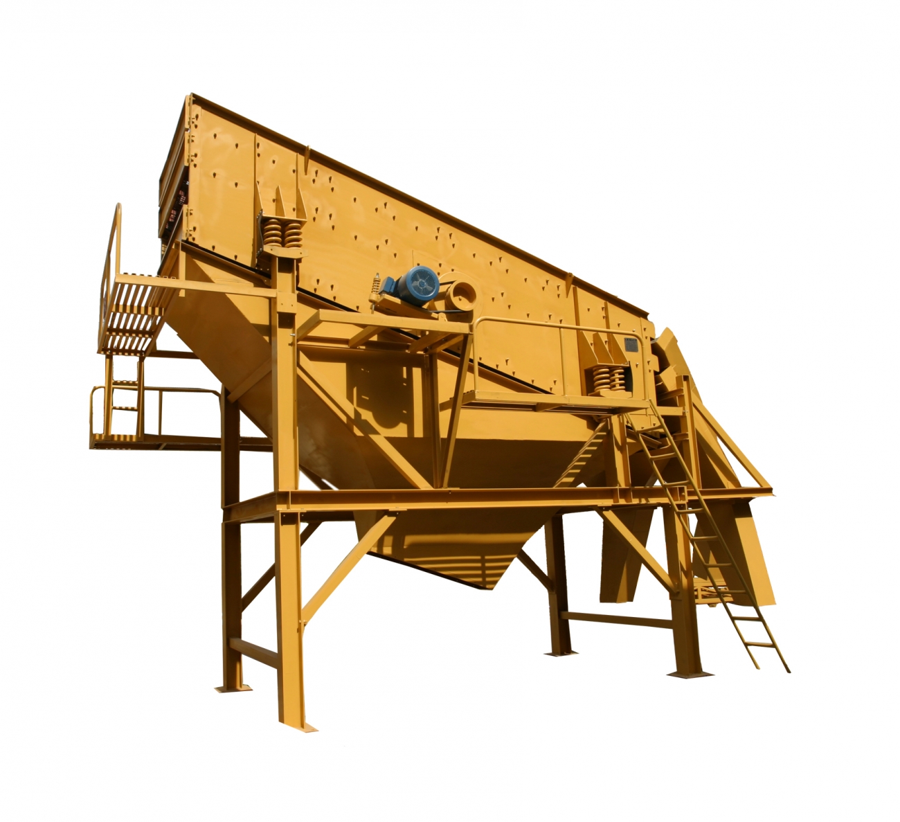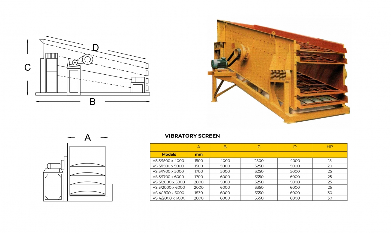 Although Armico Vibratory screens have a simple design, yet they ensure an effective screening on each deck, under light or heavy loads. Those vibratory screens have multiple decks to fulfill detailed needs. The screen meshes are attached to the main body with high resistant bolts and accentric shaft